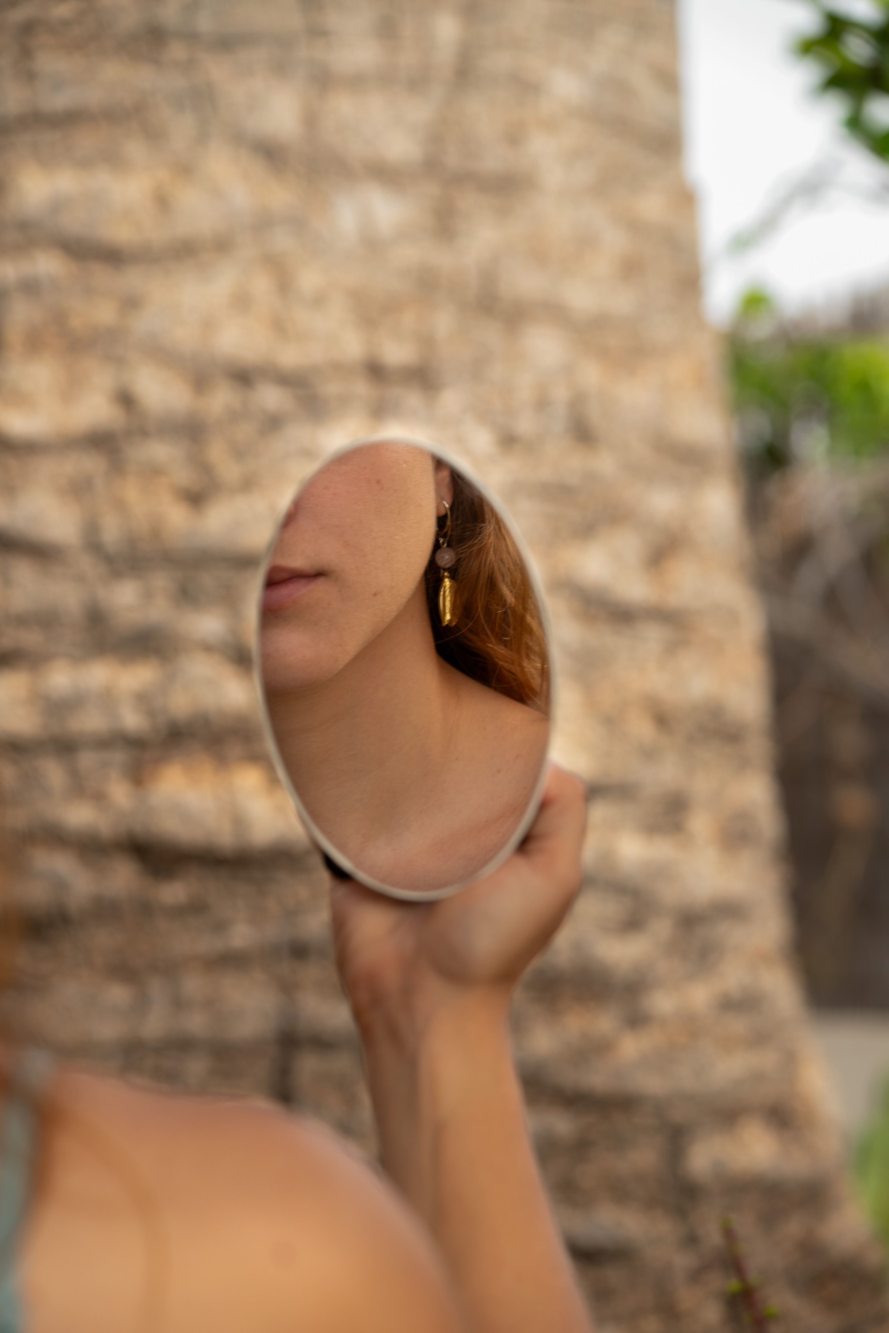 Orecchini A con Pietra rosa liscia